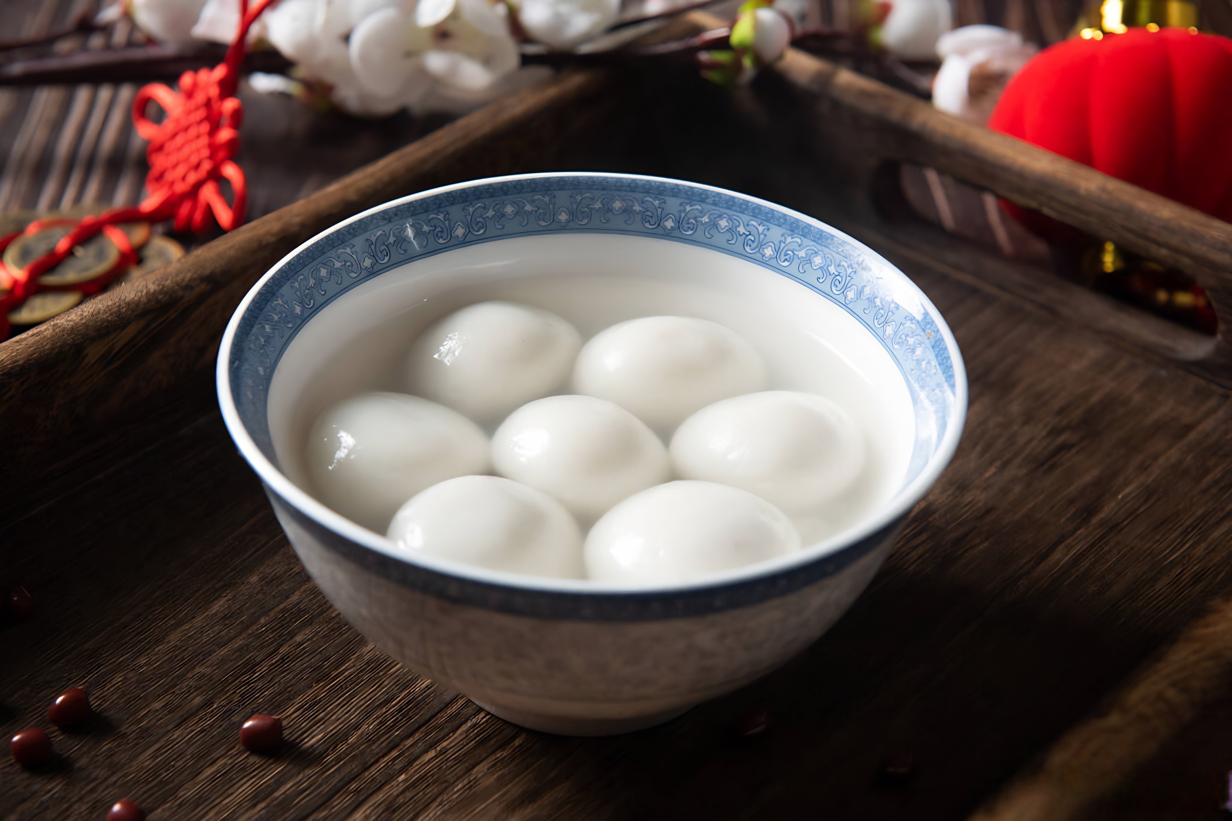 元宵是我国北方的传统时令小吃,而汤圆则多见于南方。二者都是用糯米粉做成外皮加各种馅料制作而成。元宵是“滚”成的,质地比较紧实,容易开裂,不适合冷冻储存,一般现场制作、当日售卖。汤圆是“包”好的,质地较松软,容易储存,各地可买,全年可吃。