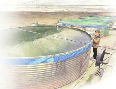 为保证水质清洁,池里的每一滴水都经历着精密的“闭路循环”。记者看到,养殖场一侧长方形的过滤池与四个养殖池紧密耦合,刘源依照顺序边走边介绍,从养殖池进来的水最先进入沉淀池,一些比较大的颗粒物会沉淀下来;第二个是微滤机,用来过滤细小的颗粒物,包括粪便、藻类等;接下来是三个生化过滤池,他指着水面上铺着的、像浮萍一般的一个个小圆片说:“这些叫生物填料,上面附着的益生菌能分解掉水中的氨氮与亚硝酸盐。最后进入的是杀菌池,经紫外线杀菌后,干净的水由循环水泵重新抽回养殖池。”