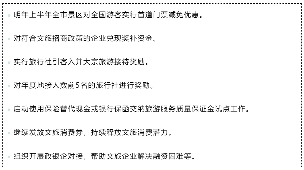 “新十条”出台后,市文旅局也制定了一系列政策措施,大力提振文旅市场信心,推动文旅行业高质量发展。