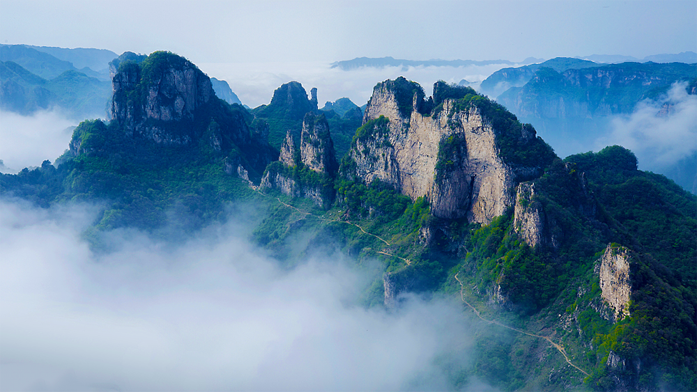 1.新乡市【回龙天界山】→ 回龙挂壁公路→锡崖沟挂壁公路→【王莽岭】→昆山挂壁公路