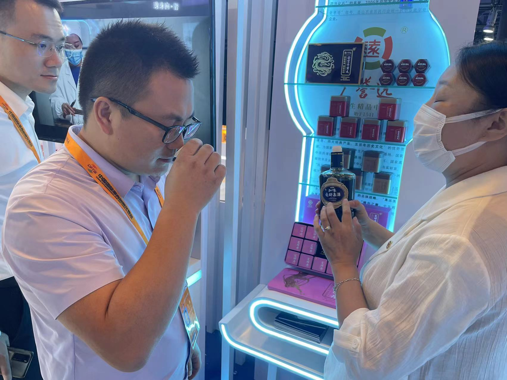 “这个药丸真的有这么神奇?”“坚持喝这个酒就能延年益寿?”走进“晋•力创新”主题区,已有不少游客在“中华老字号”广誉远中药股份有限公司的展台前咨询。
