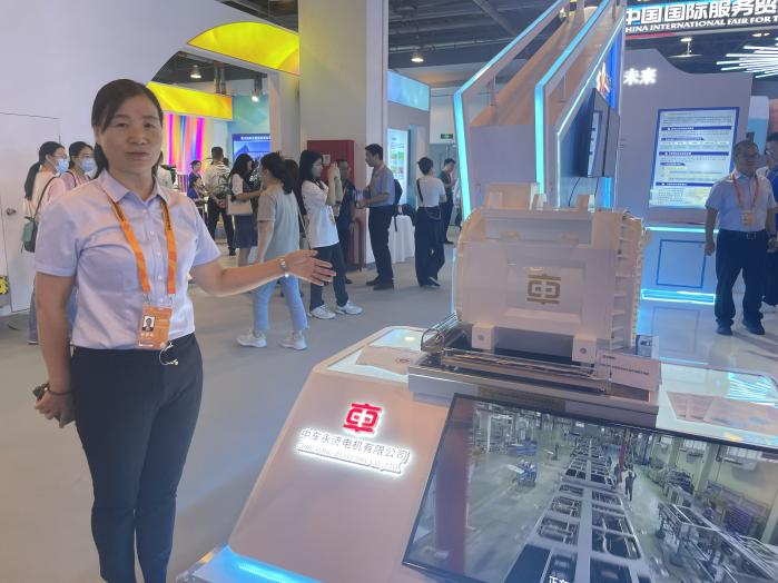 在“晋•向未来”主题区,一台时速400公里高速动车组永磁牵引机摆在最显眼的位置,这是中车永济电机公司带来的产品。“我们公司是为全球用户提供绿色和智能化电气系统的国家级创新型企业,产品已出口至50多个国家和地区。我们主要的服务业务分为技术转让和进境修理两大类,近年来,我们的服务贸易收入已达到2000多万元。”中车永济电机有限公司国际业务部项目经理刘艳萍介绍。