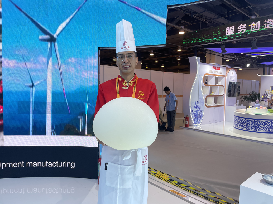 用面团吹成40厘米长的气球、五花八门的剪纸、形态各异的砚台……“晋·心传承”主题区呈现了山西省非物质文化遗产资源和传统技艺,无疑成为最受欢迎的展区。