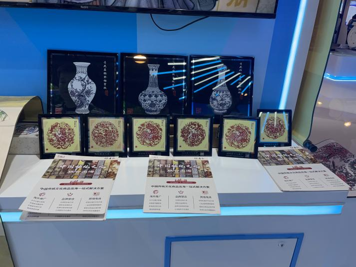 精美的广灵剪纸让不少游客驻足,作为山西的老品牌,展出的作品均来自世界级非遗传承人、省级工艺美术大师高清红设计制作的剪纸作品。“服贸会给我们提供了一个展示中国传统文化的机会,我们将珍惜此次机会让更多人认识广灵剪纸,并结识更多同行达到‘携手出海’的目标,从而带动山西文化产业的发展。”广灵县青红剪纸艺术有限公司总经理侯爵说。