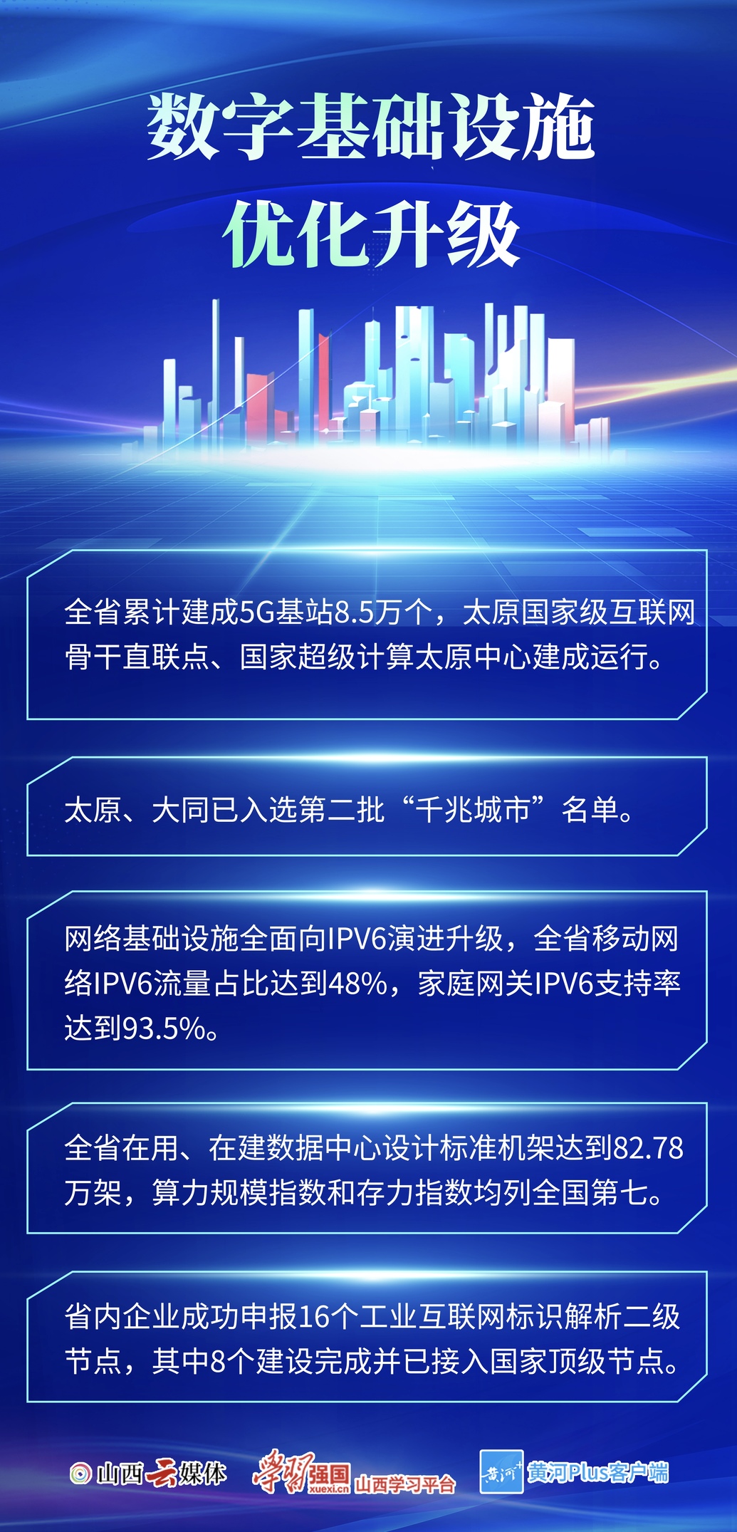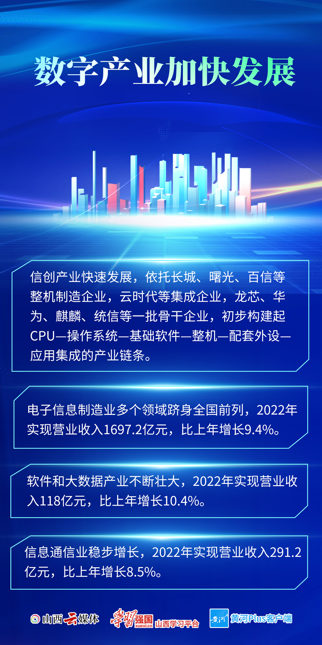 作为加快转型发展的关键力量,山西数字经济发展已迈上新台阶。2022年,全省数字经济规模达到5688亿元,比上年增长11.5%,增速排全国第11位。