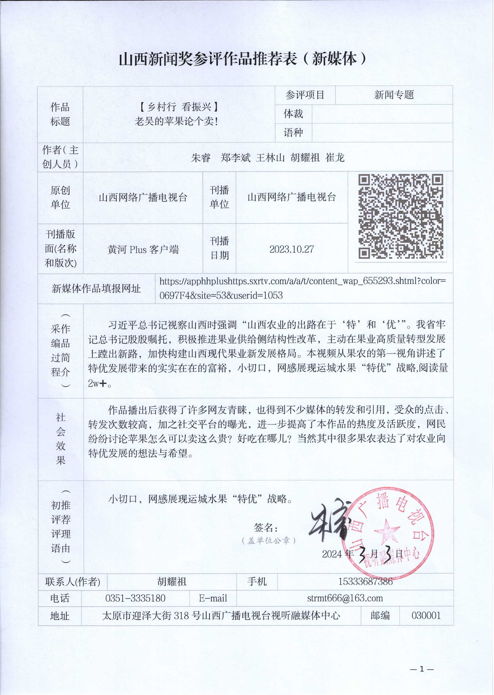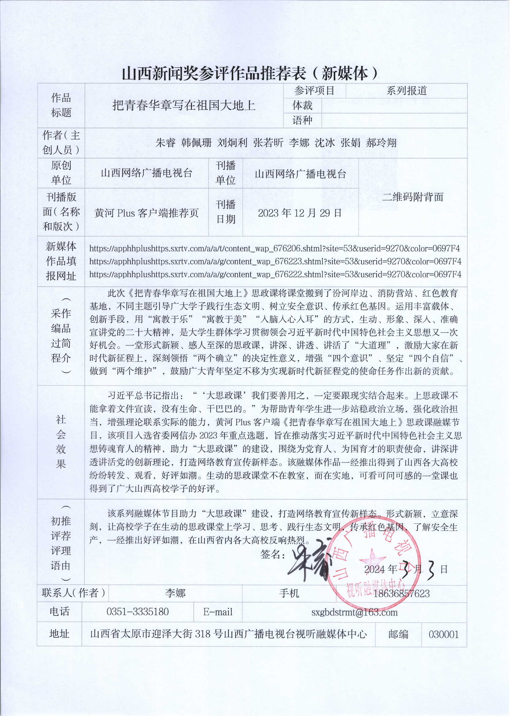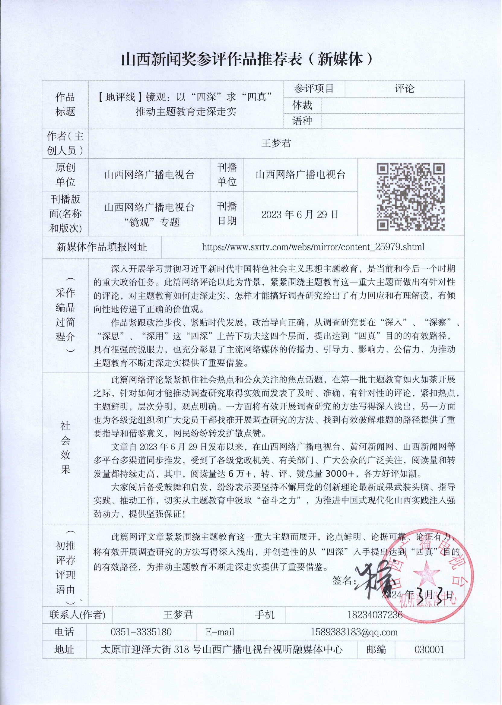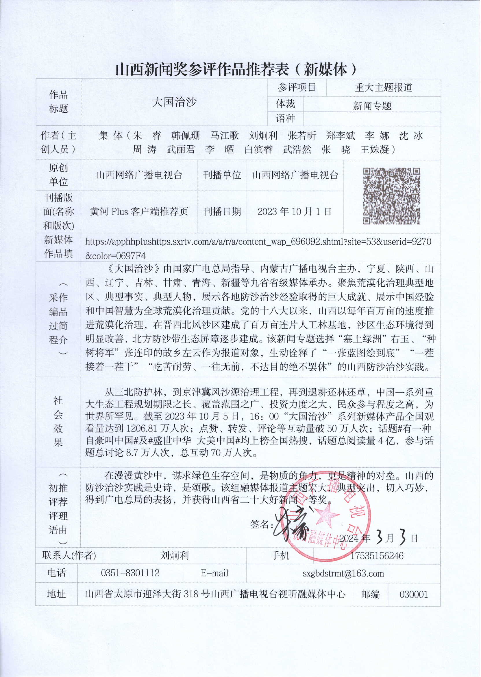 推荐参评第33届山西新闻奖作品公示