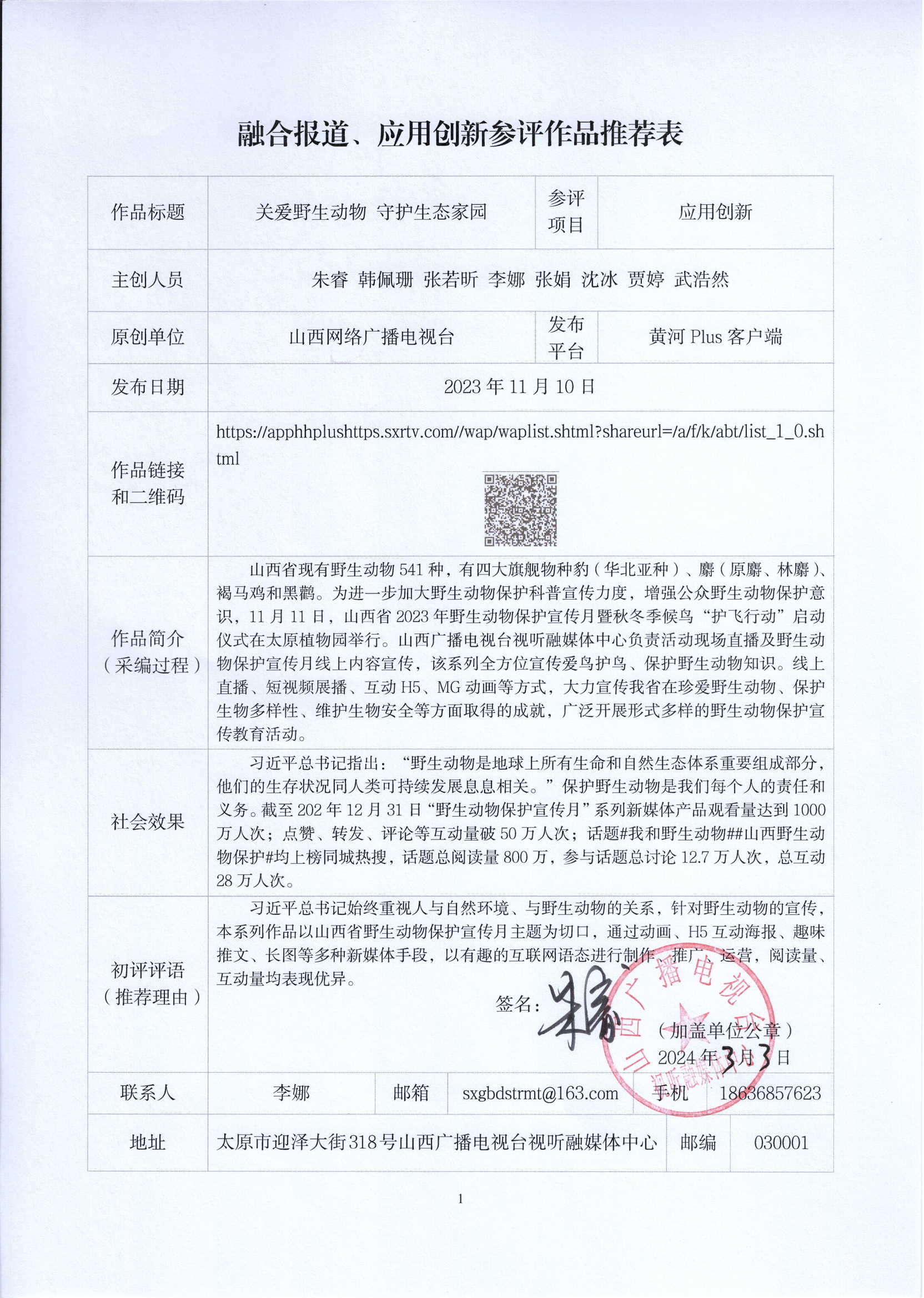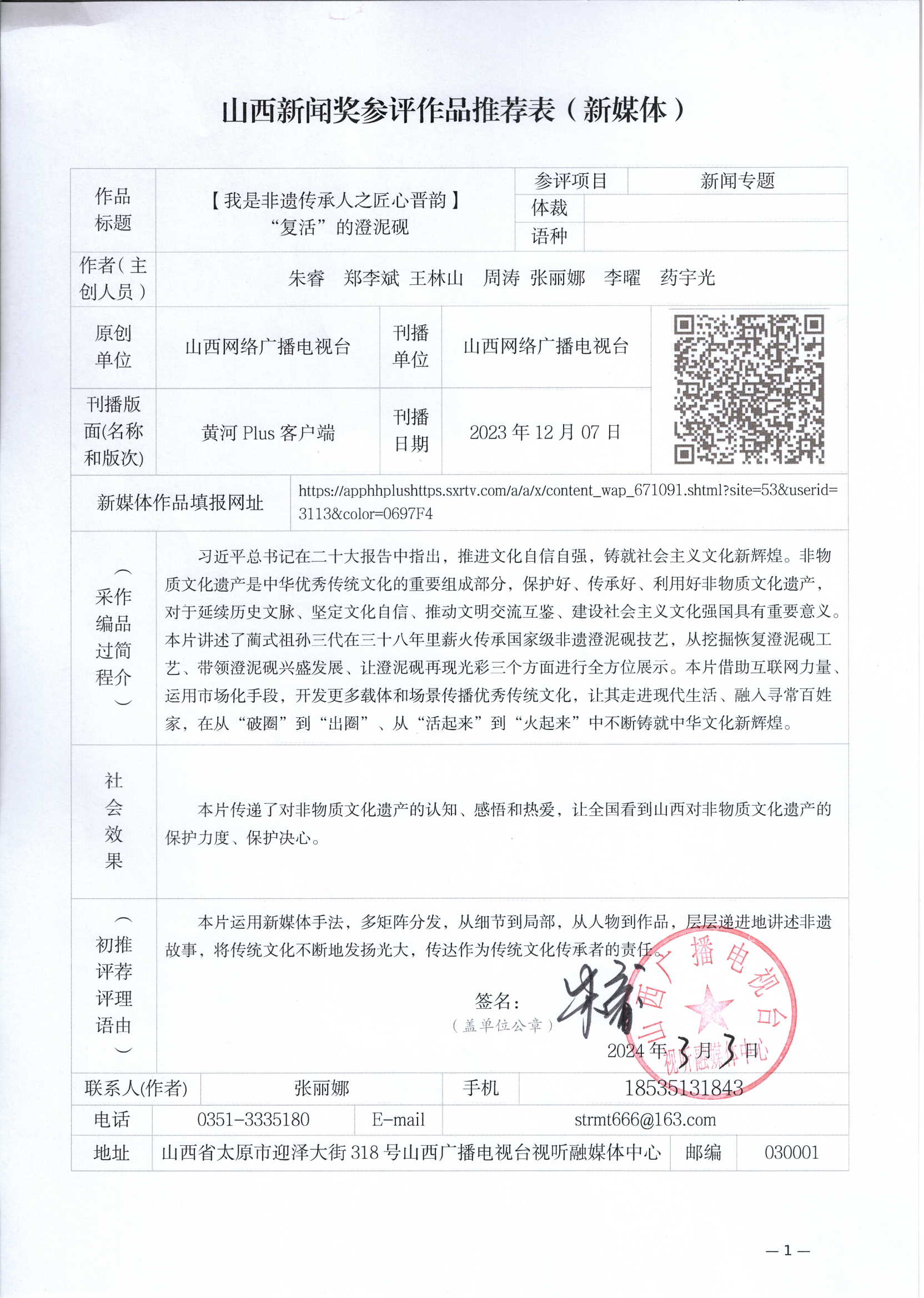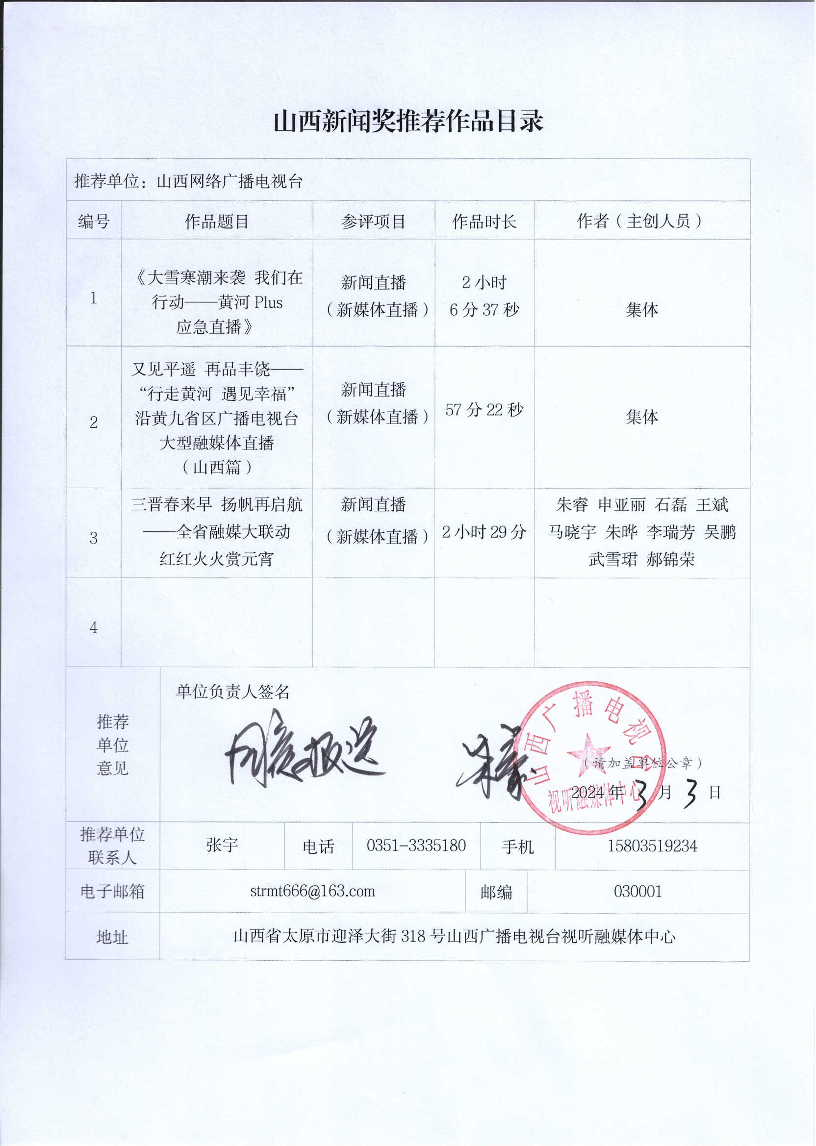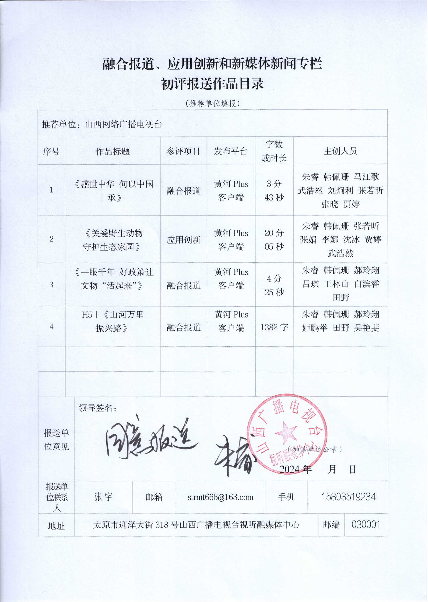 根据山西省新闻工作者协会【2024】1号《关于开展第 33 届山西新闻奖评选的通知》文件精神,山西网络广播电视台推荐7件新媒体作品(包含1件新闻业务研究作品)、4件融合报道应用研究作品和3件新闻直播作品参加第33届山西新闻奖初评,现予以公示,公示期为2024年3月4日至3月8日。如有异议,请与山西网络广播电视台联系,联系电话0351—8301112。