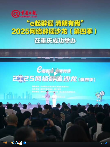 活动现场发布了《2025重庆网络辟谣年度十大案例》《重庆网络谣言治理研究报告(2025)》,以及重庆市“首批涉企网络举报辟谣工作直联点”试点单位。