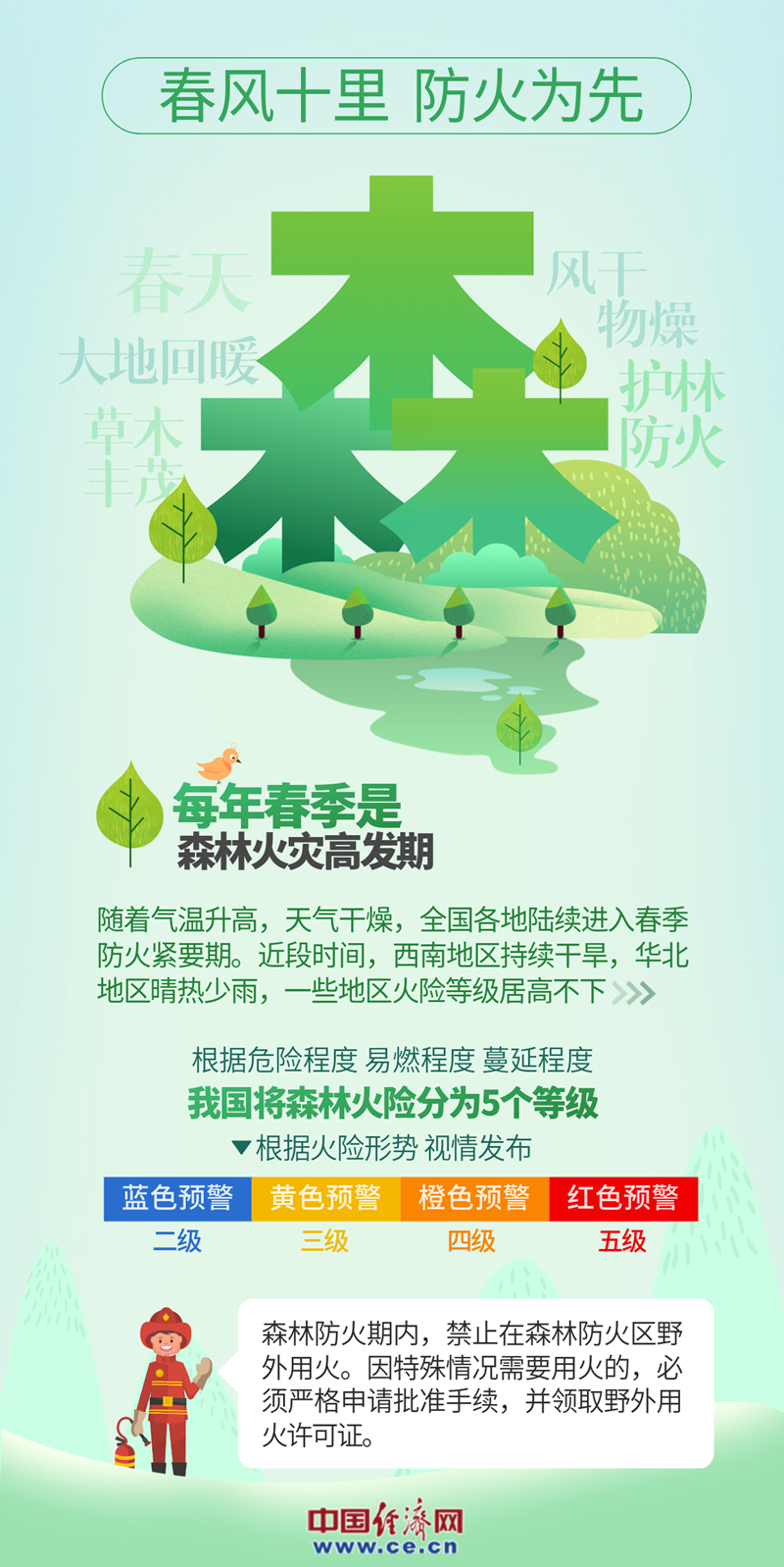 中国经济网北京4月3日讯(记者 杨秀峰 李冬阳 景远)近期,春耕生产、踏青旅游、民俗祭祀等活动逐渐增多,一些地区接连发生森林火灾;一些地区火险等级居高不下,全国各地陆续进入春季防火紧要期,防灭火形势严峻复杂。