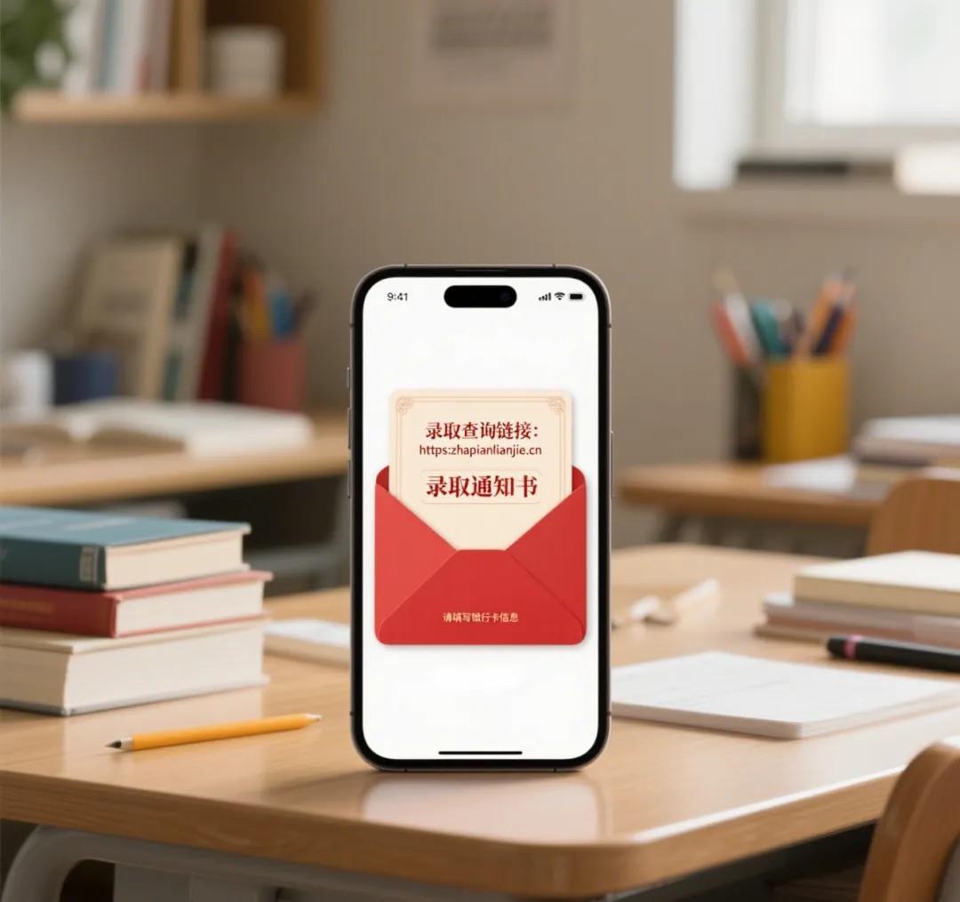 陷阱手法:收到看似正式的“录取通知书”短信或邮件,要求点击链接查询详情或支付“录取确认费”。