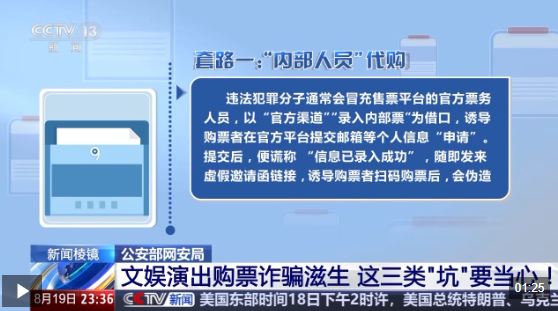 近期,文娱演出市场可谓热度爆表,但在音乐狂欢的背后,各类购票诈骗陷阱也悄然滋生。公安部网安局发布提示,这几类购票陷阱一定要小心,避免票务诈骗那些“坑”。