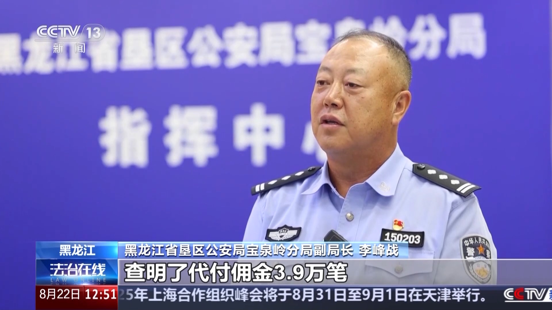 黑龙江省垦区公安局宝泉岭分局副局长 李峰战:经过对这三个犯罪团伙犯罪过程进行深度研判,我们又发现了该犯罪团伙组织全国20多个省市地区的人员参与引流犯罪,查明了代付佣金3.9万笔,累计800余万元。